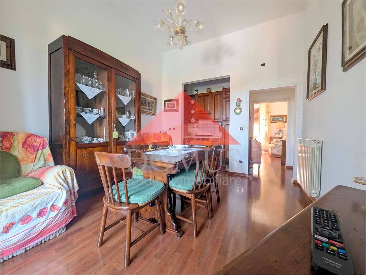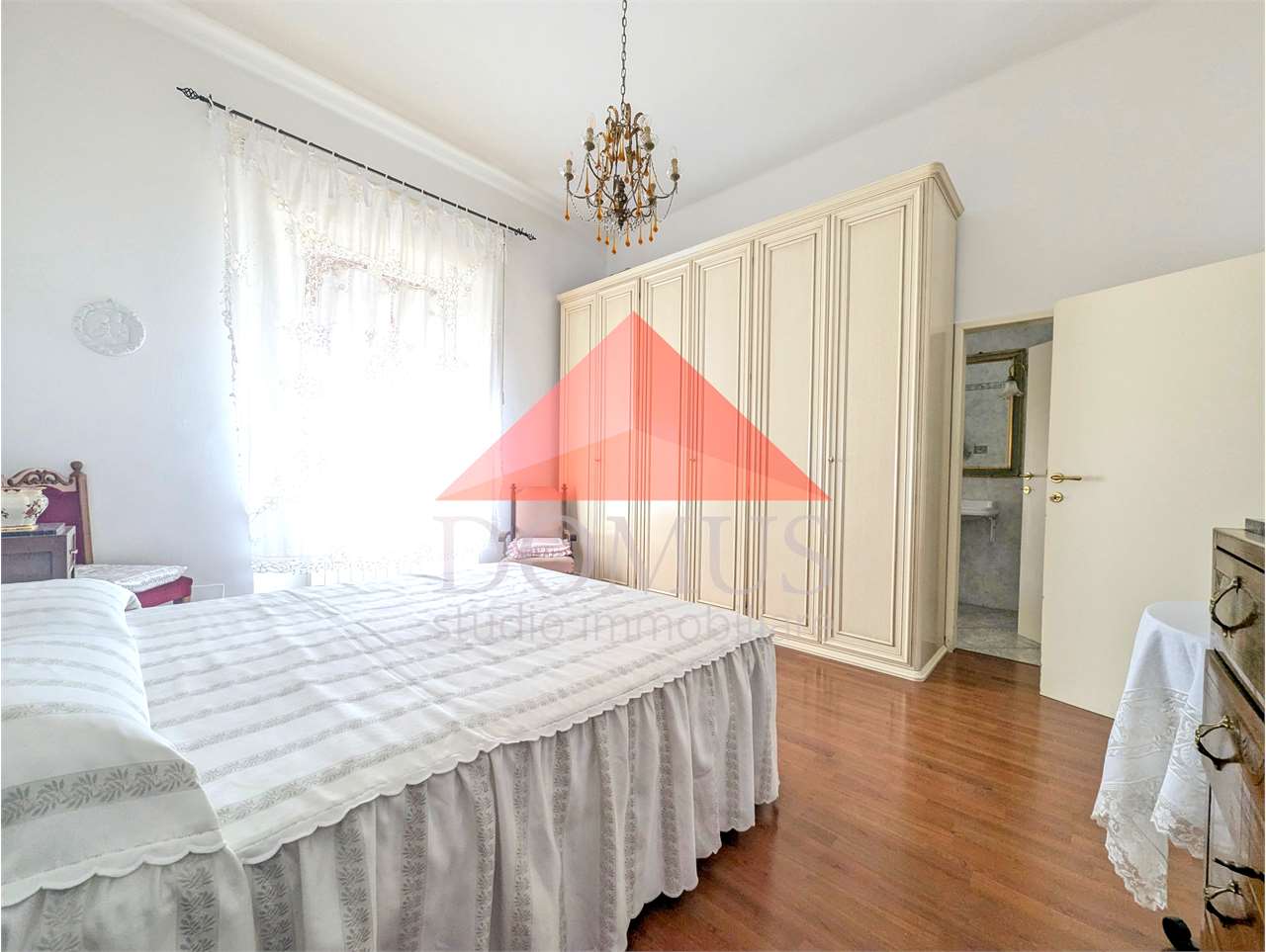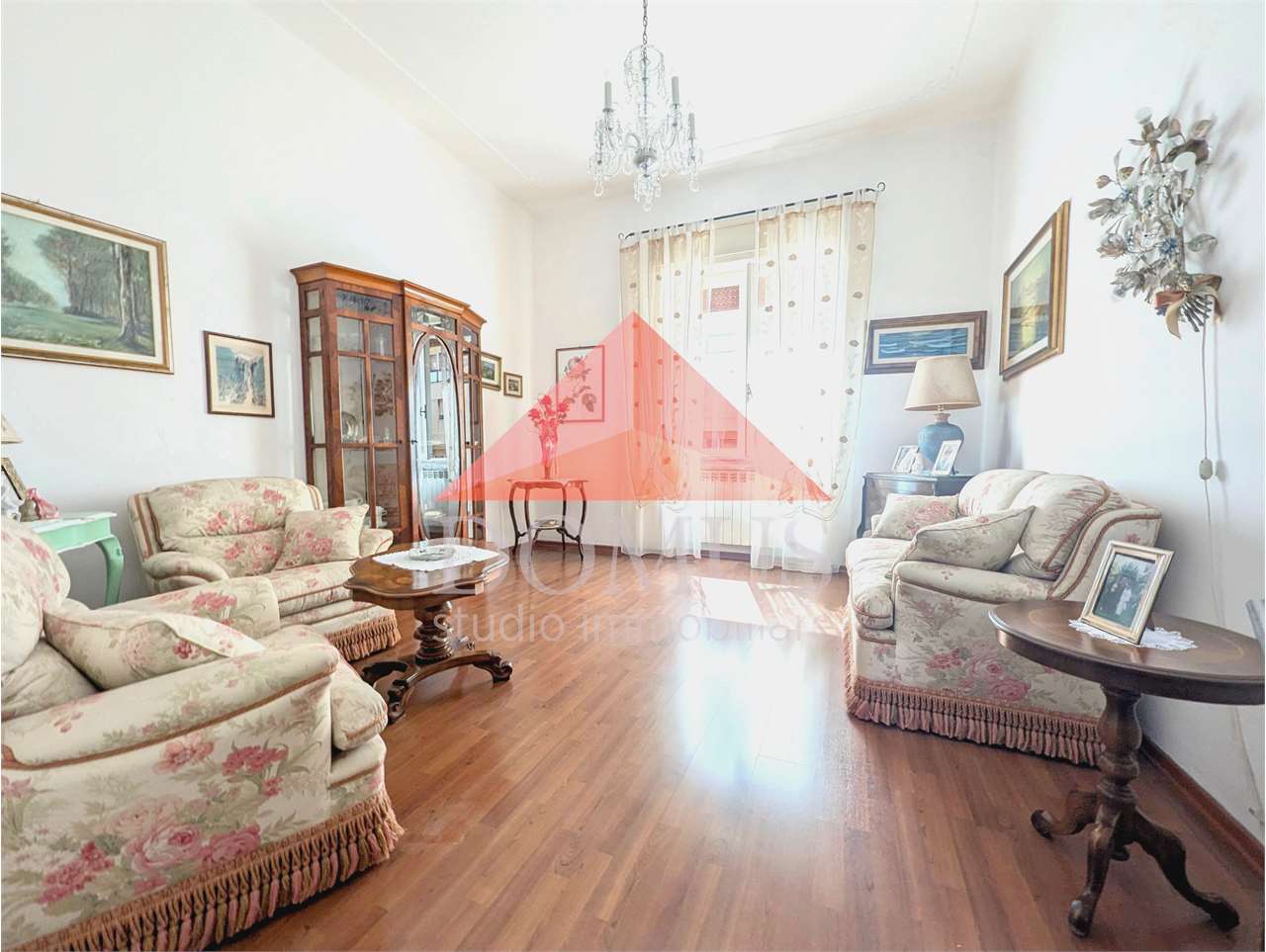 Vendesi ampio e luminoso appartamento al primo piano, in pieno centro, composto da: Ingresso, sala, cucina pranzabile con veranda lavanderia, due camere matrimoniali di cui una con bagno privato, bagno.