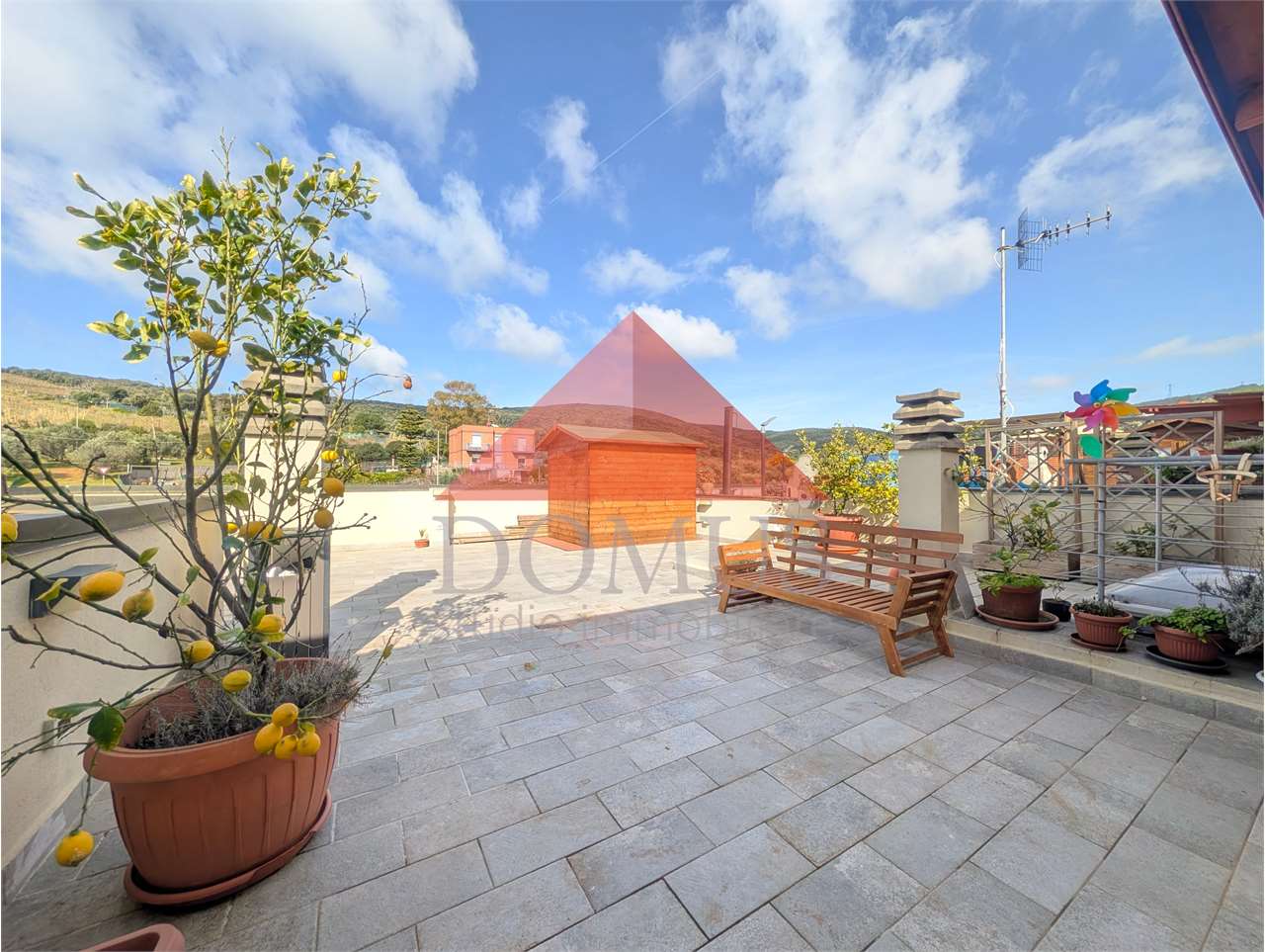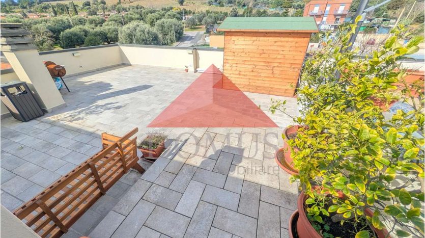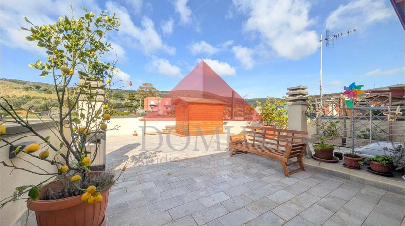 Vendesi appartamento al primo ed ultimo piano con vista mare, in località Ghiaccioni, con ampia terrazza pranzabile privata di circa 100 metri quadrati, composto da: ingresso, ampio soggiorno con cucina, due camere matrimoniali, ampio bagno, ripostiglio e due balconi.