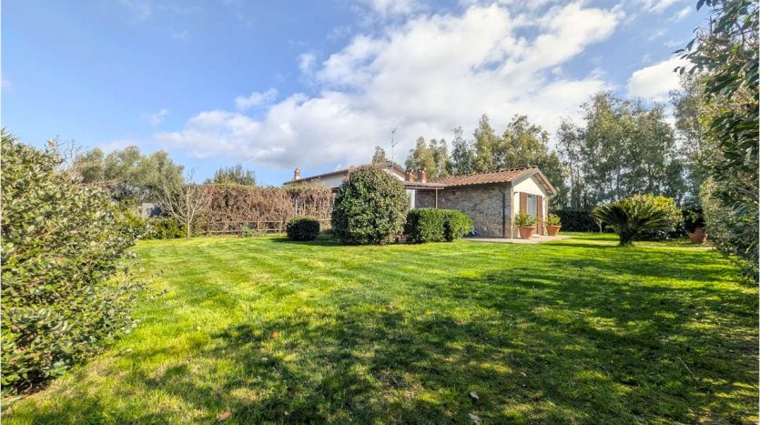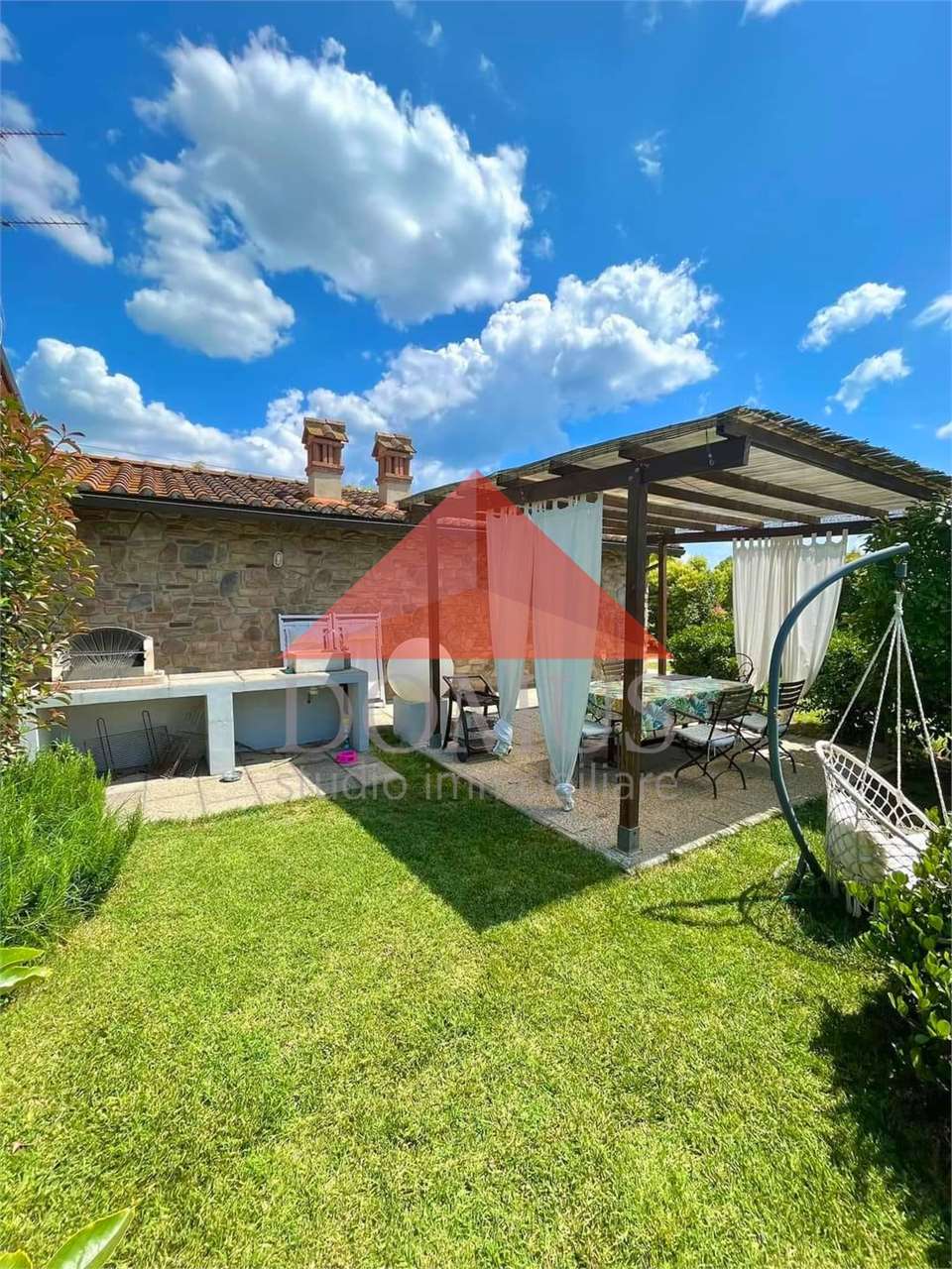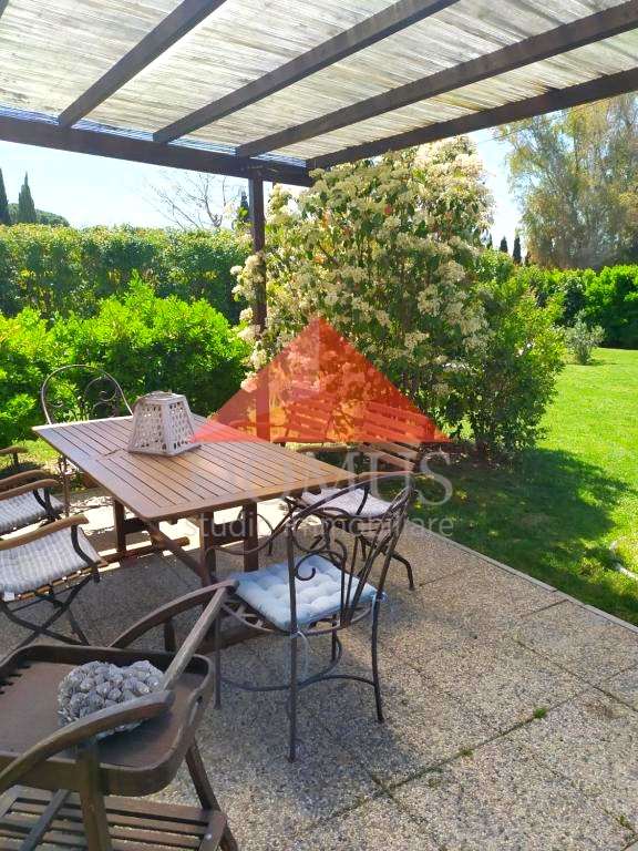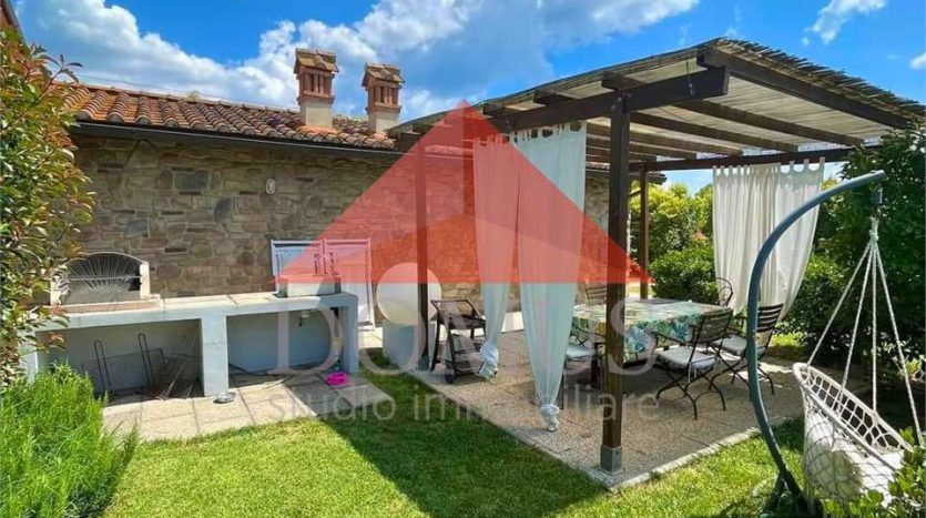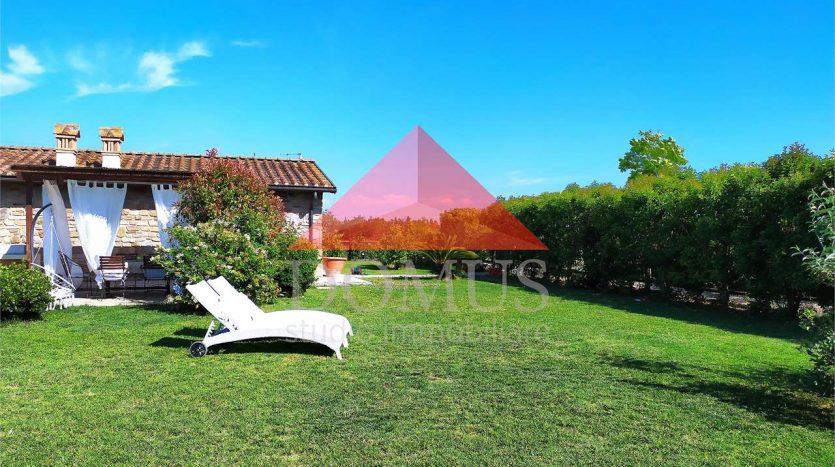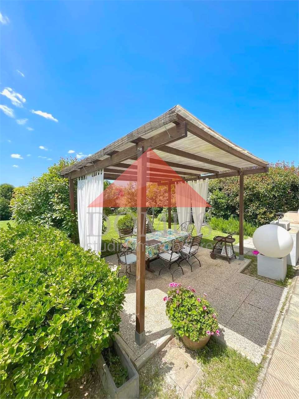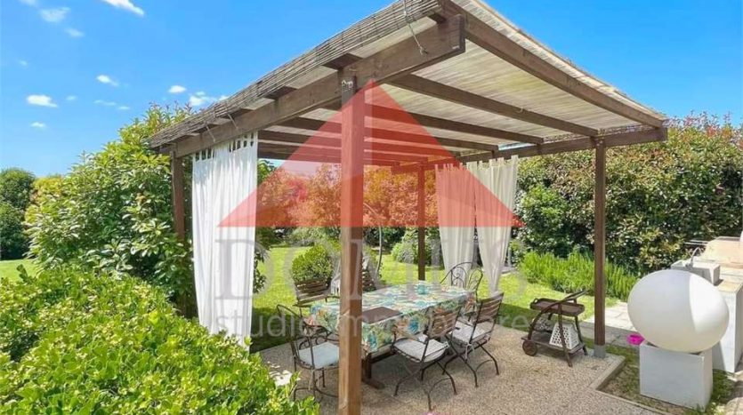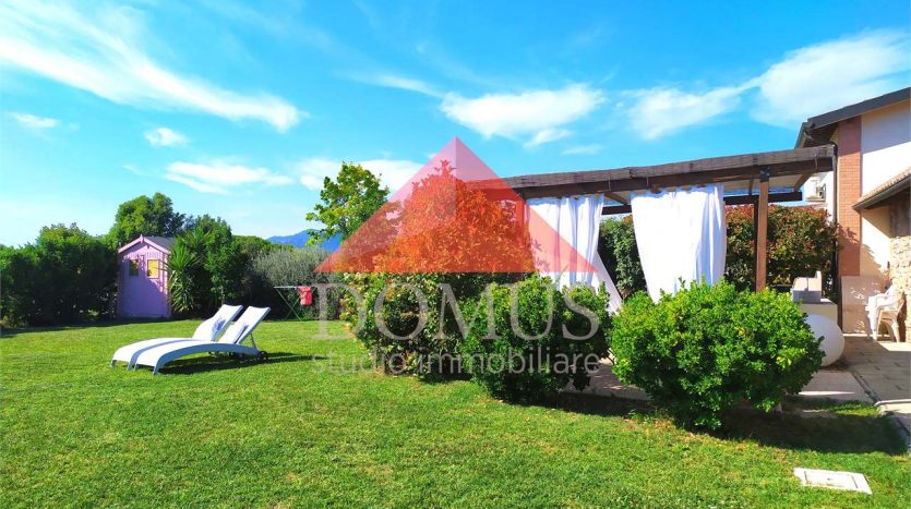 – ampio giardino privato di circa 500 metri quari sul quale insistono pergolato attrezzato e pratica cucina per esterno in muratura. Il giardino è completamente recintato e dotato di impianto di irrigazione automatico.