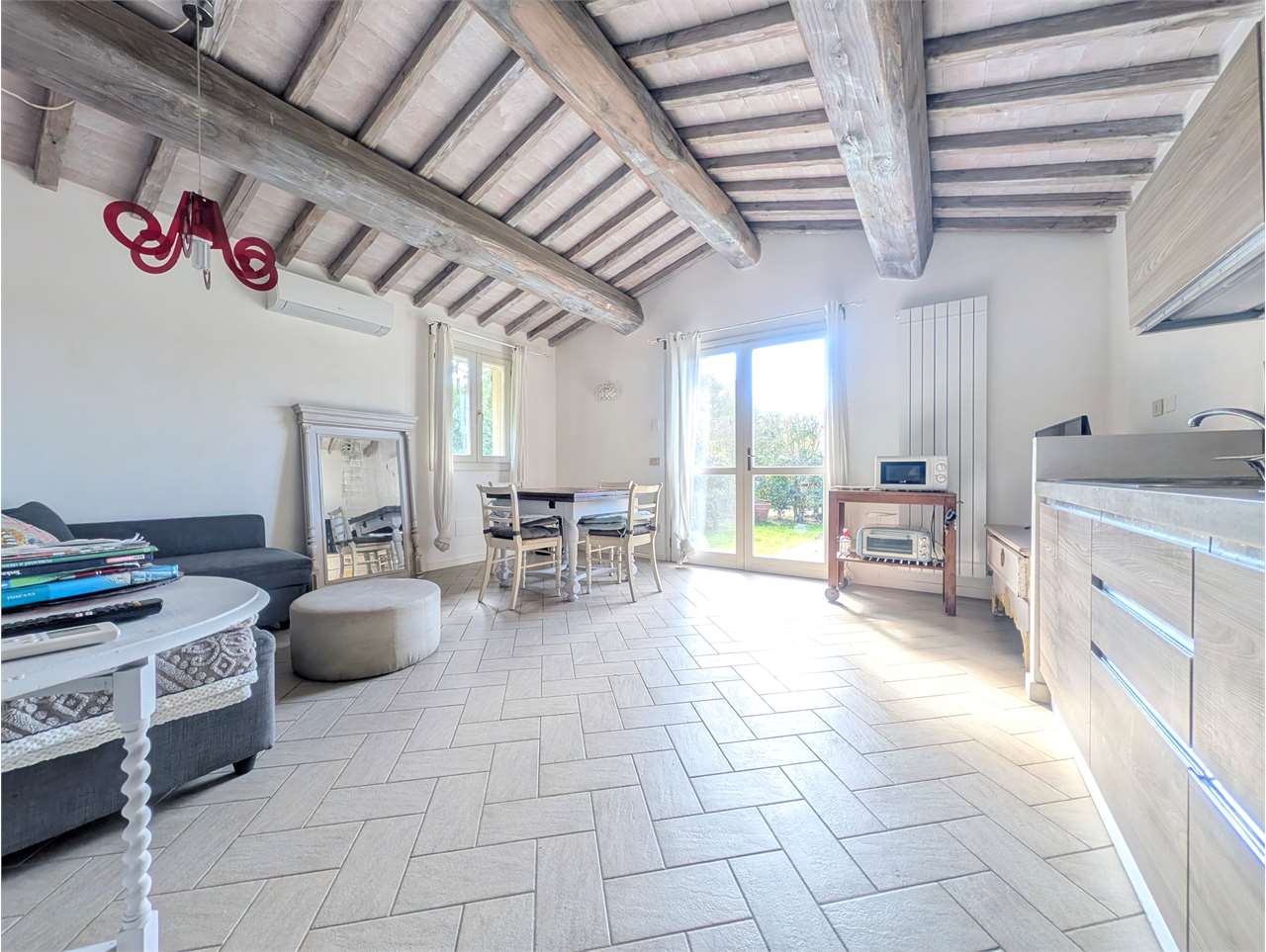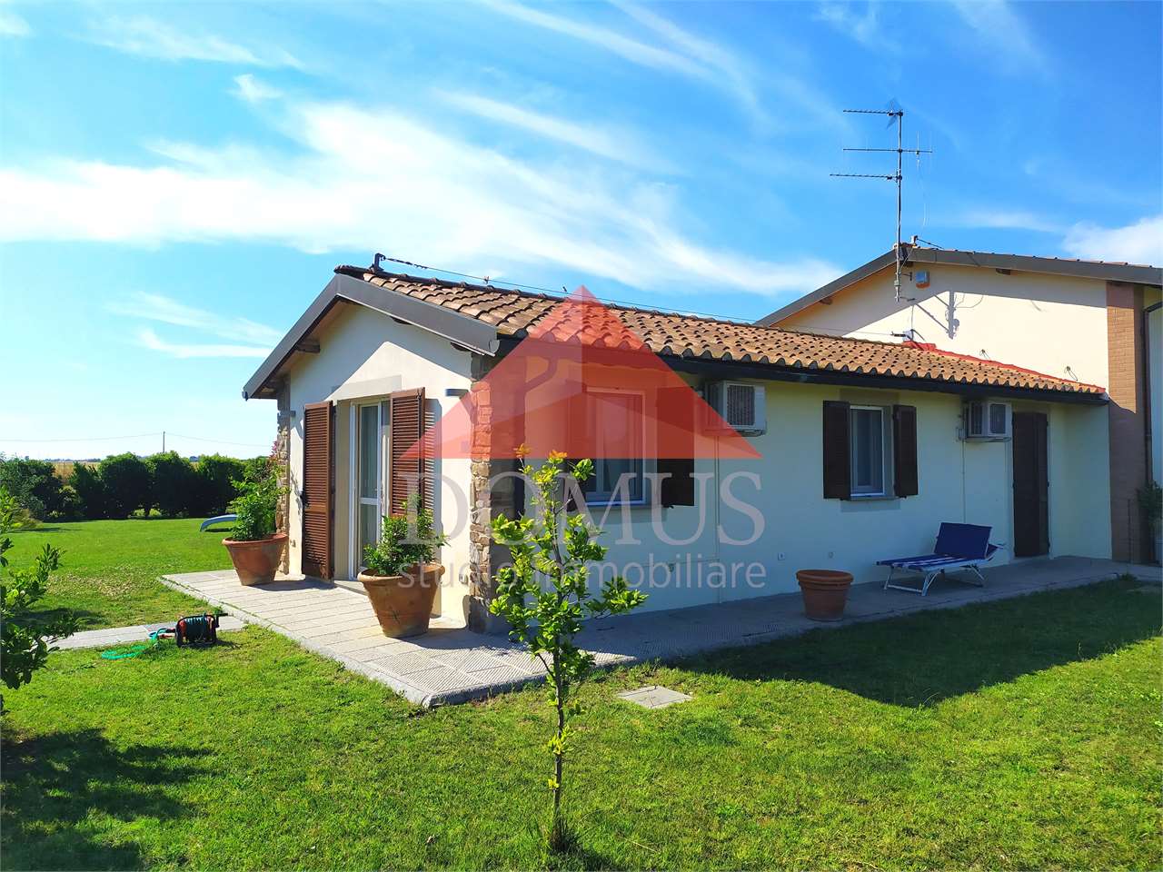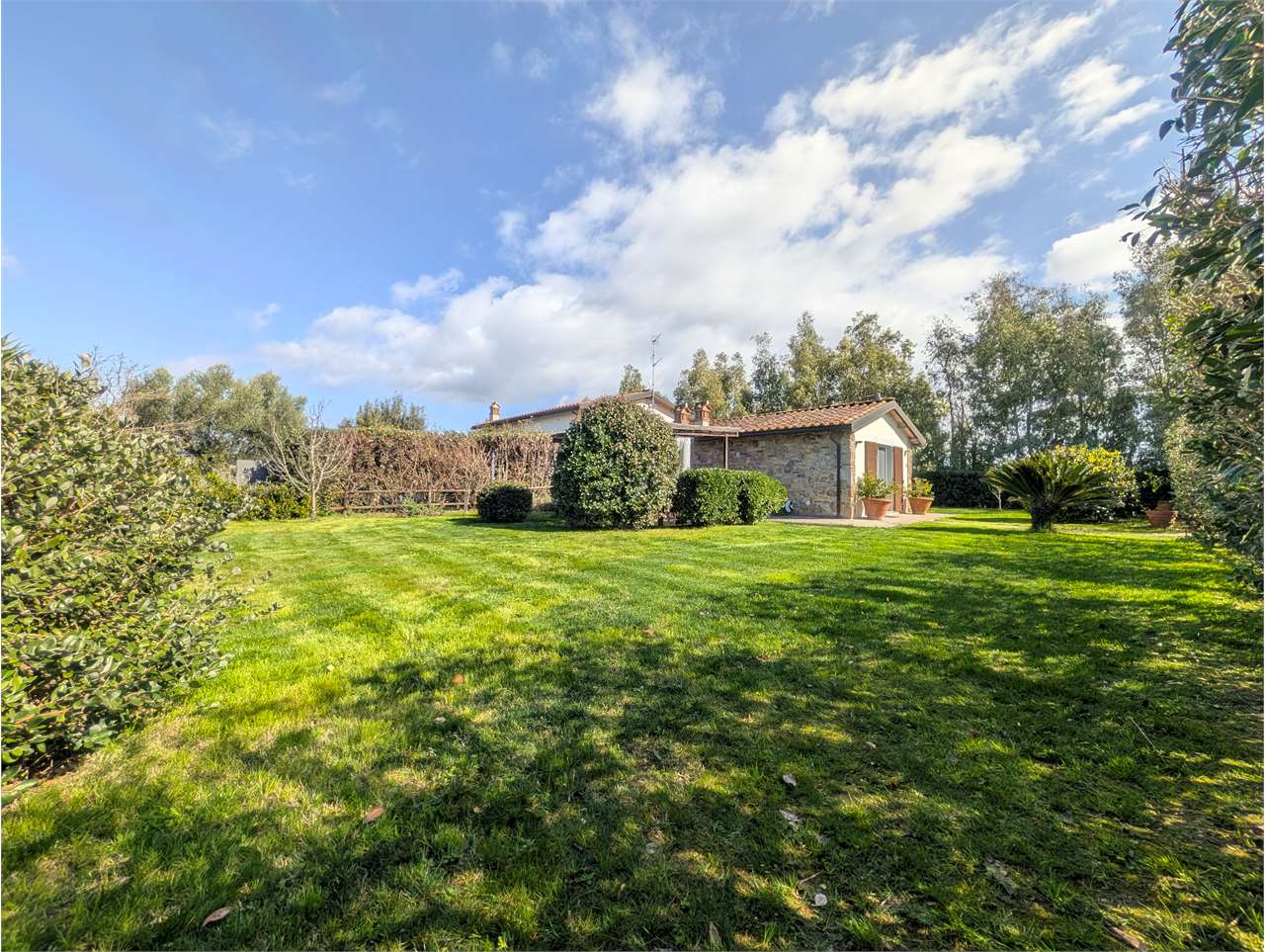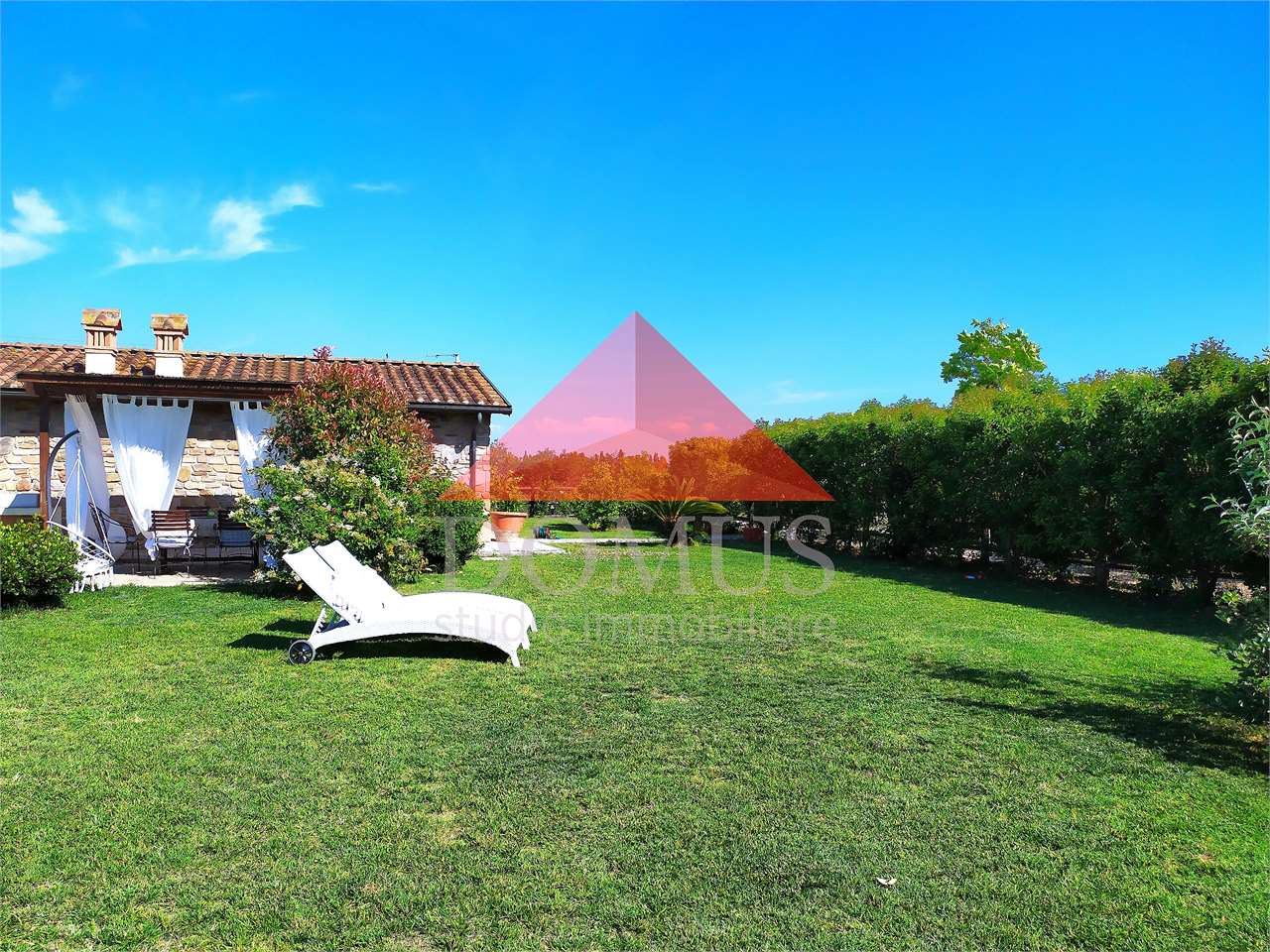 – ampio giardino privato di circa 500 metri quari sul quale insistono pergolato attrezzato e pratica cucina per esterno in muratura. Il giardino è completamente recintato e dotato di impianto di irrigazione automatico.