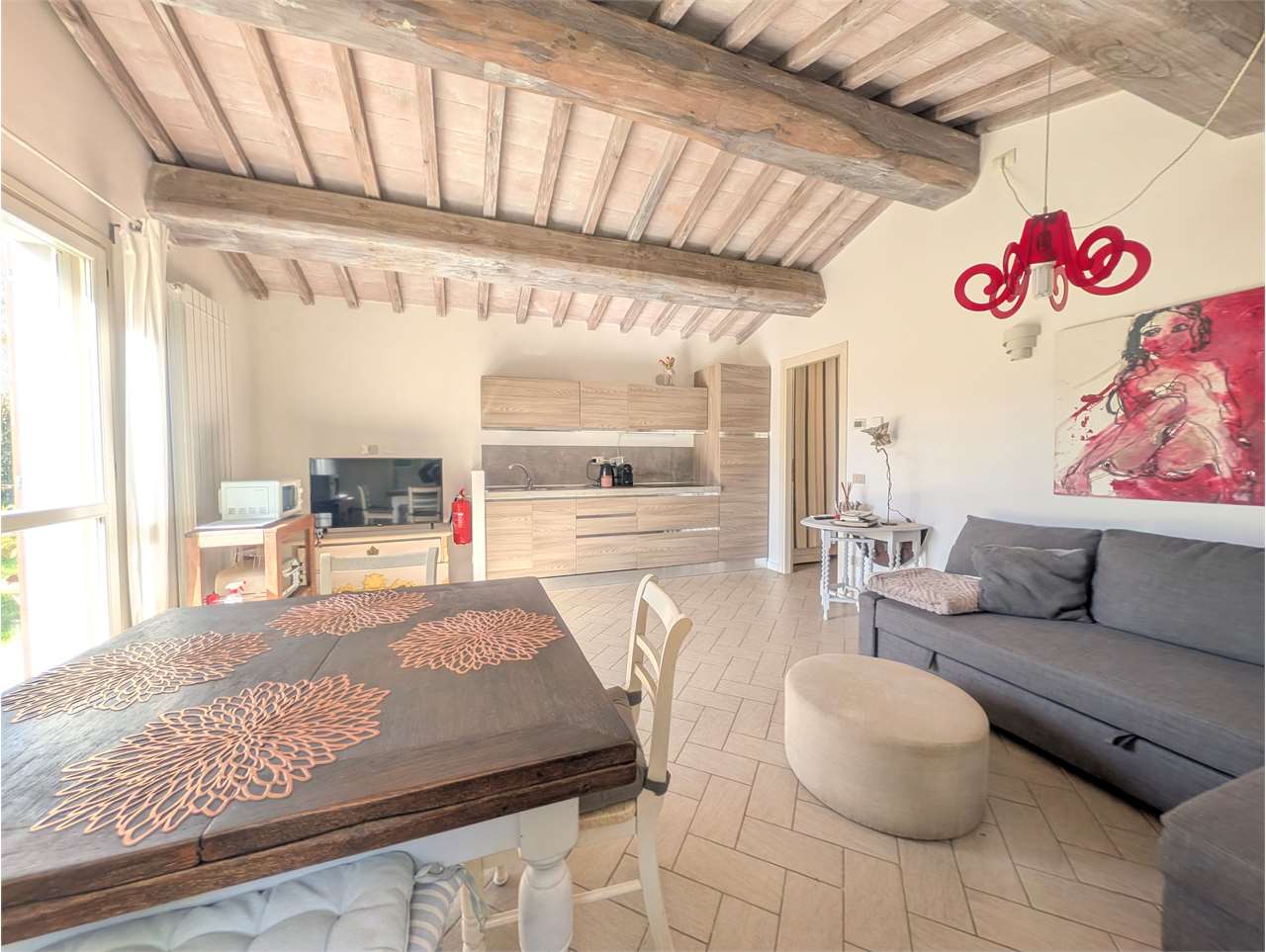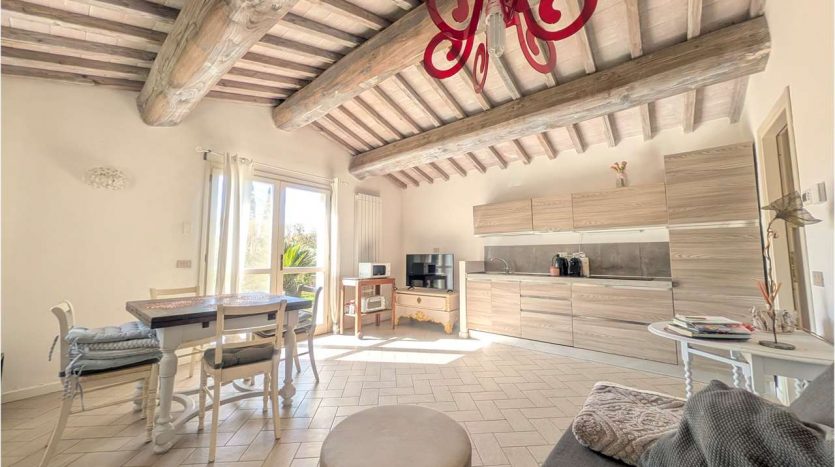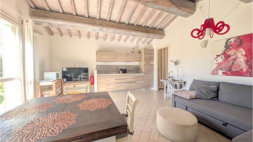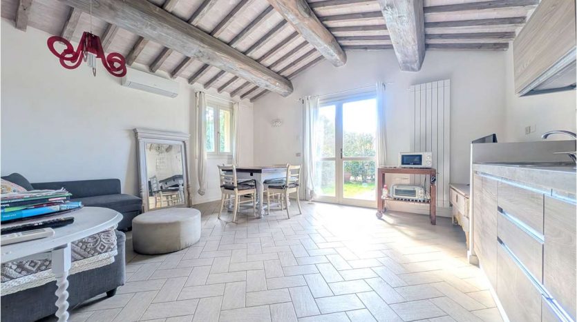 L’immobile è composto da ampio soggiorno con angolo cottura, camera matrimoniale, bagno e ripostiglio lavaneria.