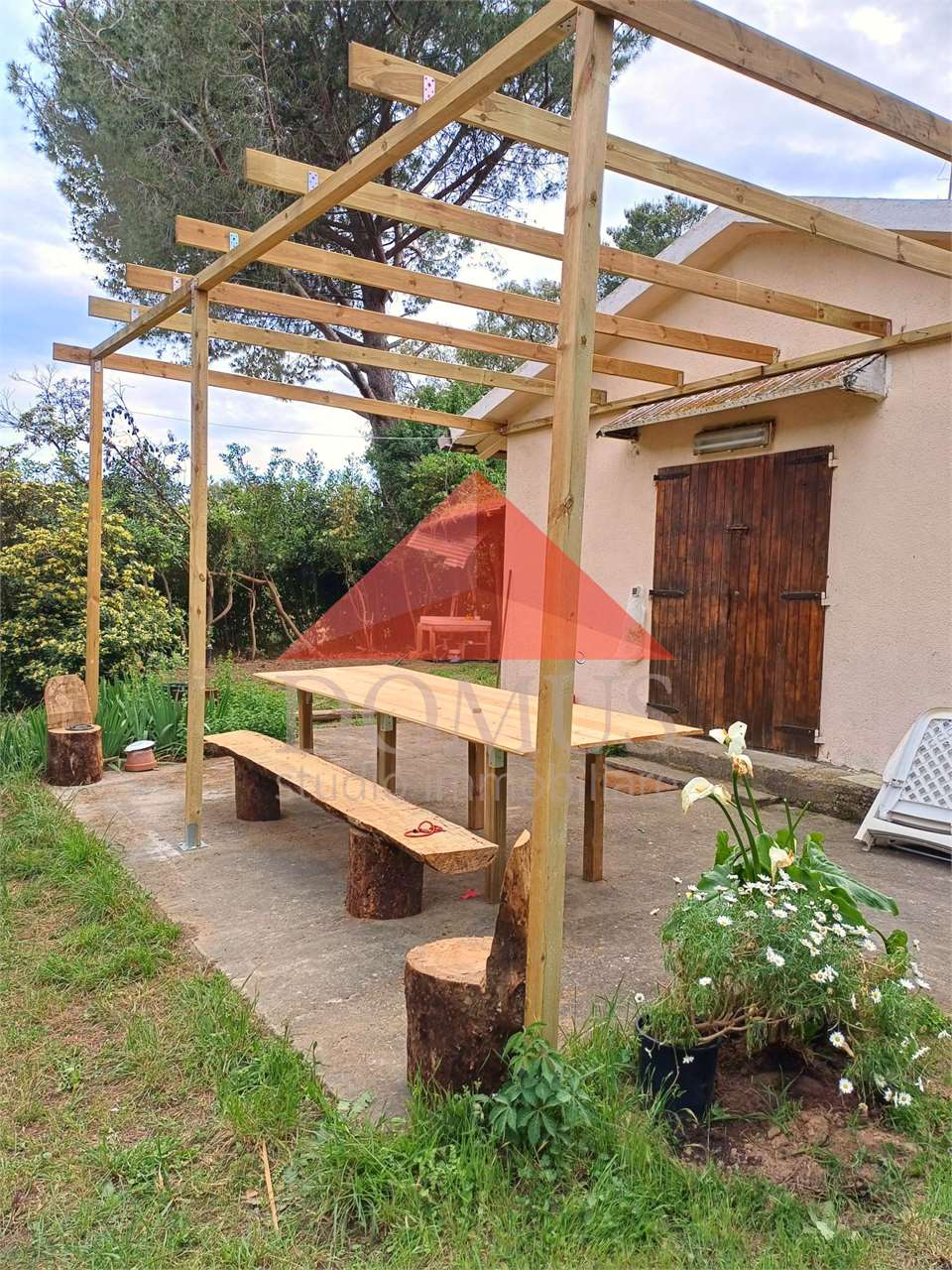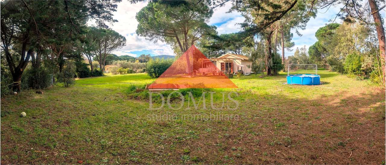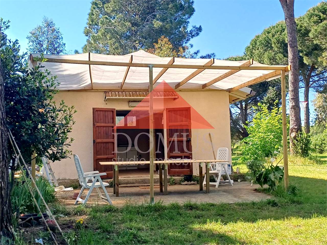 L’immobile comprende un uliveto di circa 1000 m², alcuni alberi da frutto e sempreverdi e un’ampio prato che accoglie un laghetto e una piscina fuori terra di recente installazione.